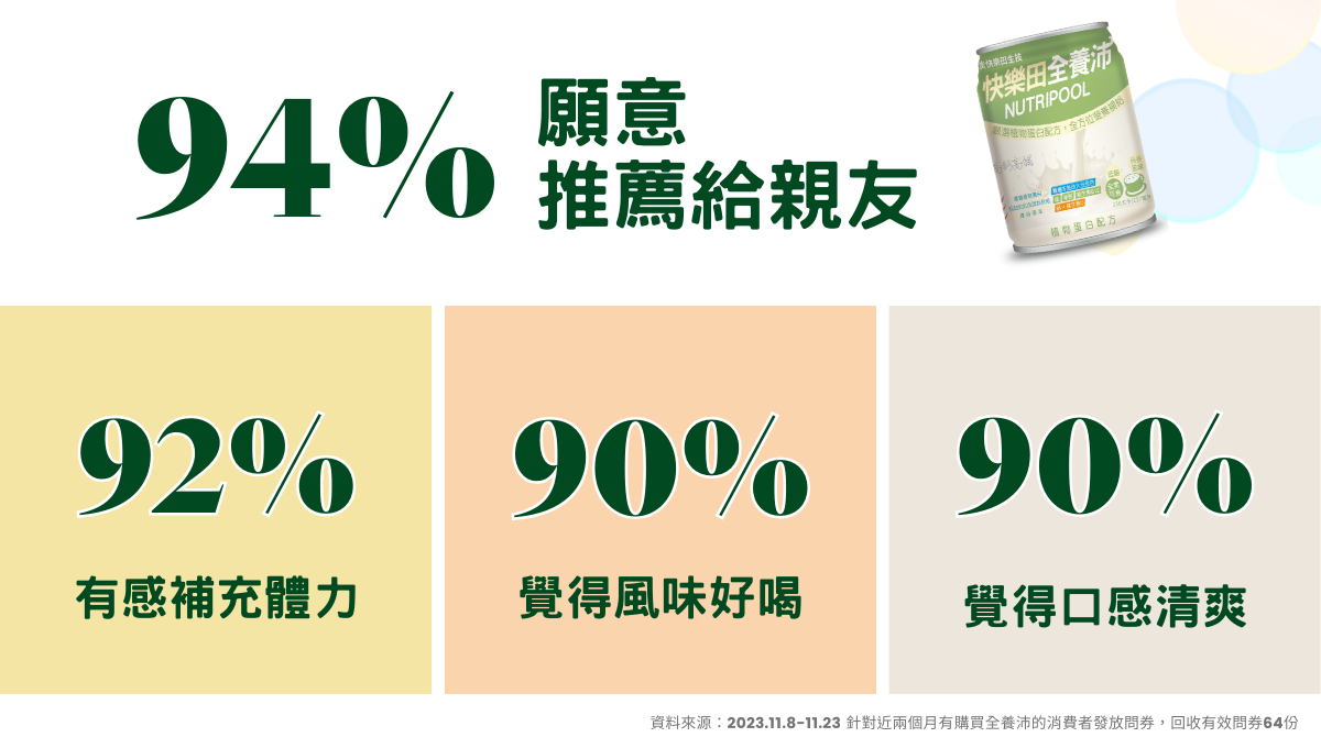 ● 全養沛:全方位營養飲,每罐30多種營養素,日常補充病後補養都適合