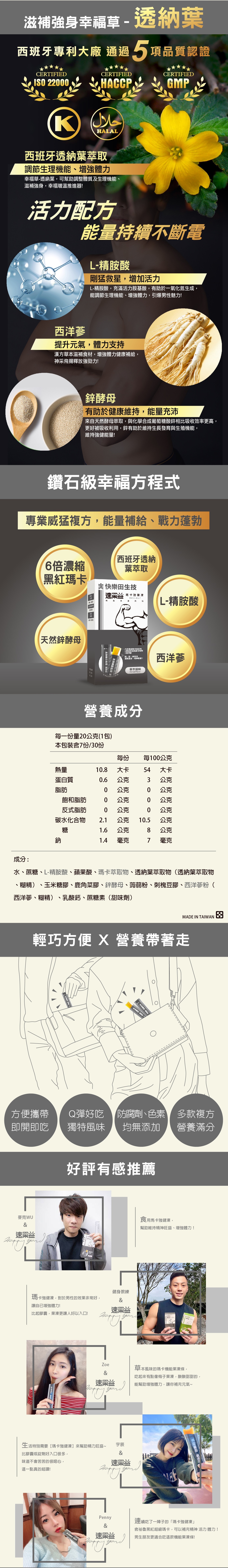 ● 西洋蔘、L-精胺酸、酵母鋅,滋補強身增強體力